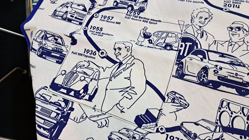 FIAT歴代の車両が描かれたFIAT FESTAオフィシャルブランケット。