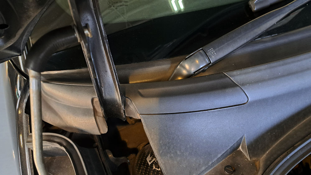 TRUCCO Today! ABARTH500 fukushima 2025年10月30日 ABARTH500は固定する爪が割れてしまった ワイパーカウルトップカバーを左右に交換し、本日継続検査@車検です。