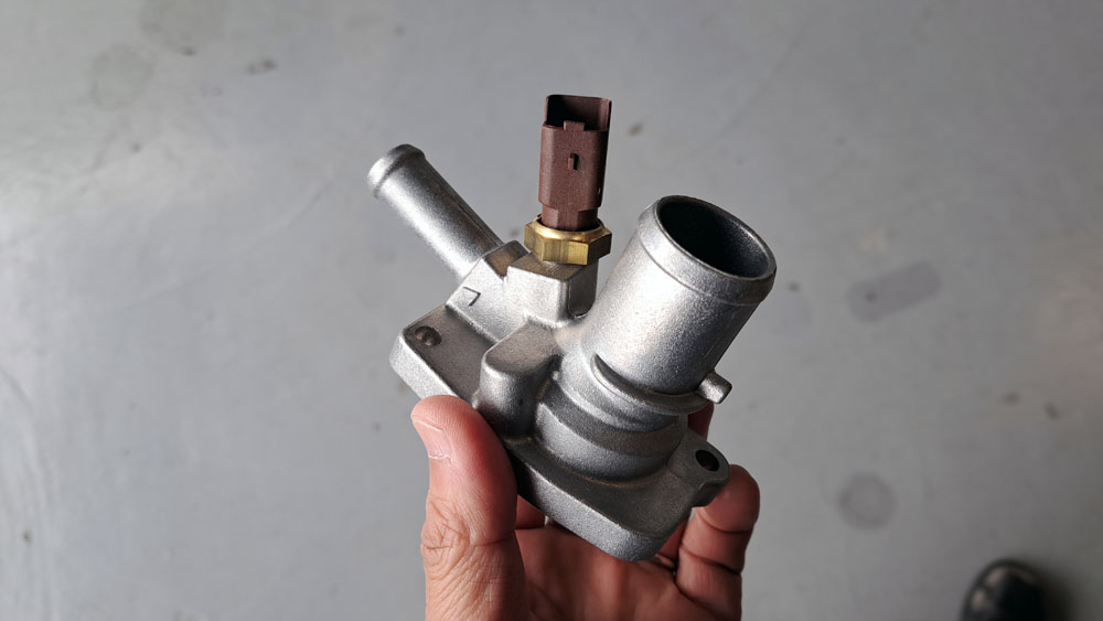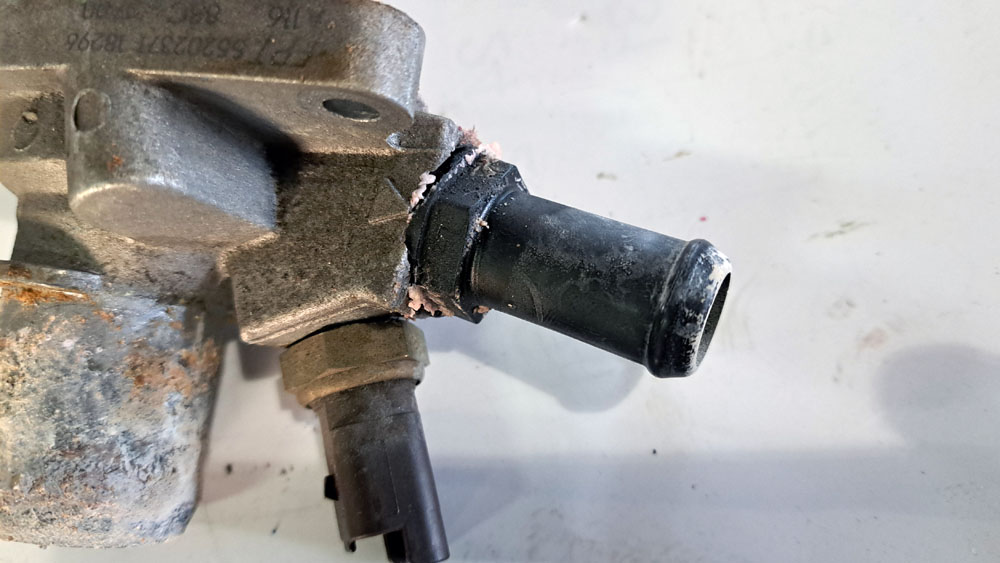TRUCCO Today! サーモスタット交換 fukushima 2025年12月23日 冷却水漏れ修理の500はサーモスタットを交換しました。 純正のプラスチックパイプ部は折れる寸前でしたねー メタルニップルのサーモスタットに変えたので安心ですね。