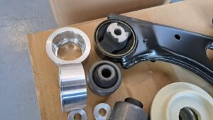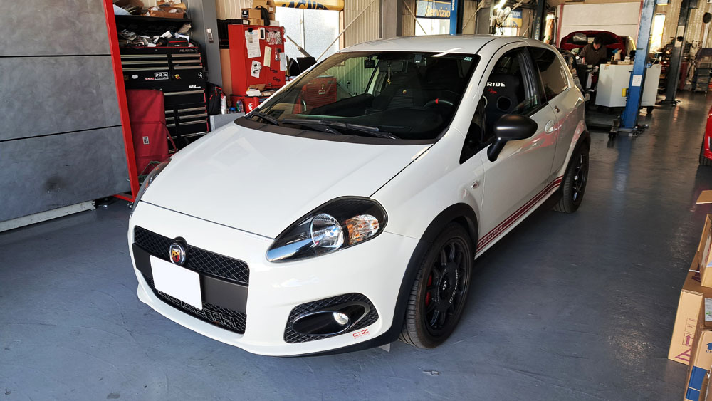 TRUCCO Today! Aragosta TRUCCO special fukushima 2026年1月10日 ABARTH GRANDE PUNTOは足回りリフレッシュ作業で入庫。 アラゴスタ車高調整式サスペンション装着に合わせて ロワアアーム(強化ブッシュ組込み)や各マウント類も交換します。