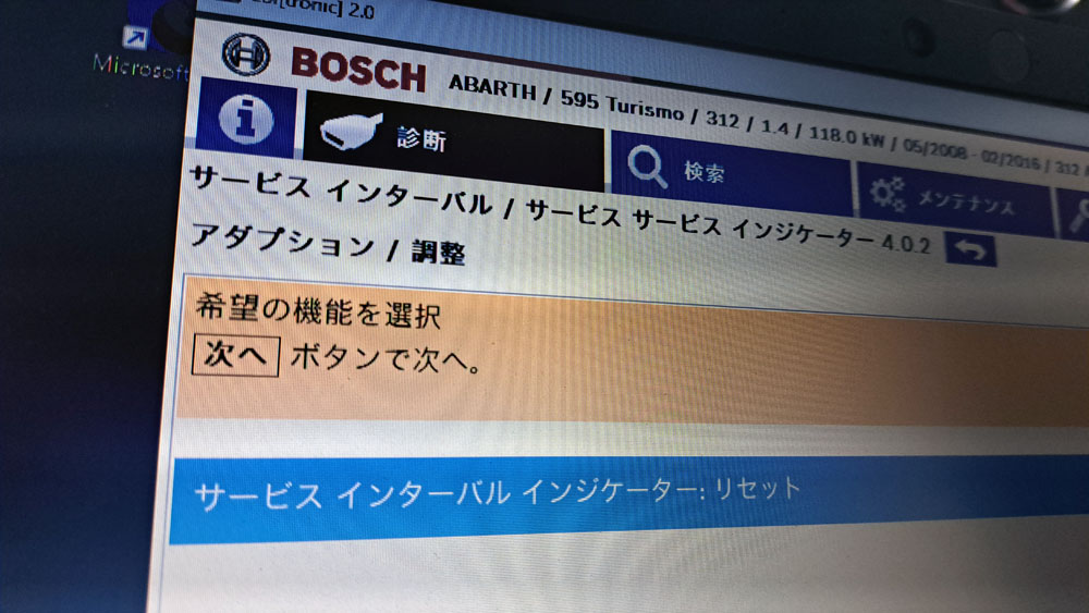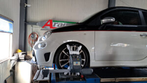 TRUCCO Today! アライメント fukushima 2026年2月15日 LEDバルブ化&点検の595Cはテスターでエラー点検/サービスインターバルをリセット。 ステアリングが取られる症状が有るためアライメント調整を行います。