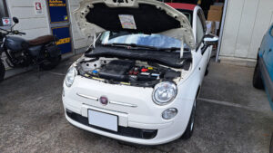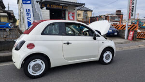 TRUCCO Today! FIAT500C fukushima 2026年2月17日 500Cは始動不能で入庫。バッテリーが完全に終わっていたので交換し エラー点検&消去/テスト走行で問題無い事を確認し、お渡しします。