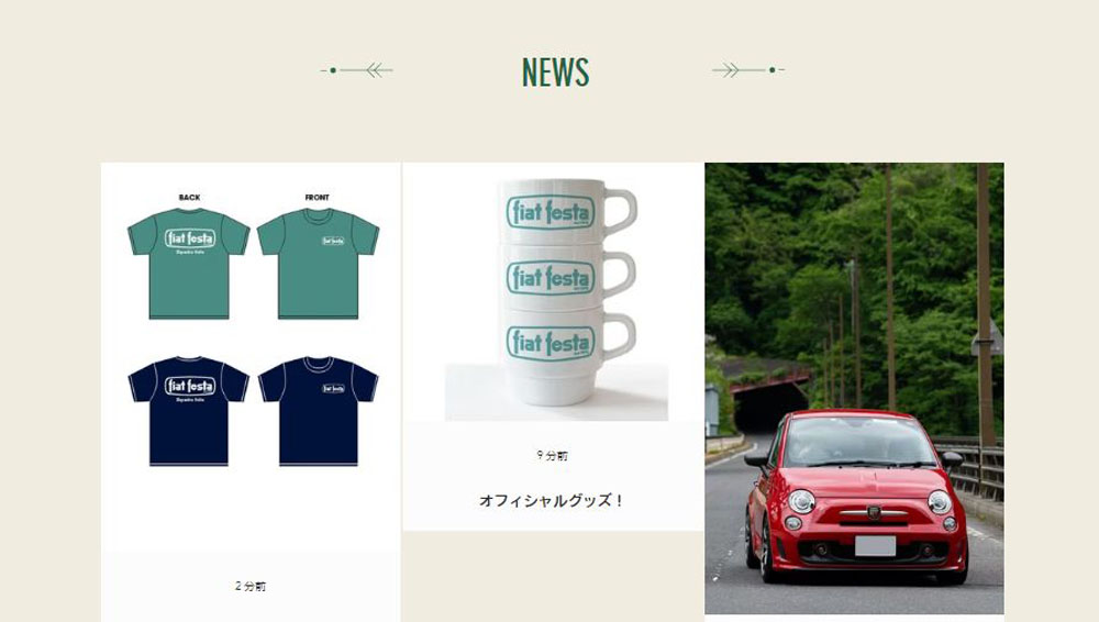 Event オフィシャルグッズ fukushima 2026年3月19日 今年のFIAT FESTAもオフィシャルグッズを企画/制作しています。 イベントに関する最新情報はNEWSコーナーより御覧下さいませ。 FIAT FESTA 2026