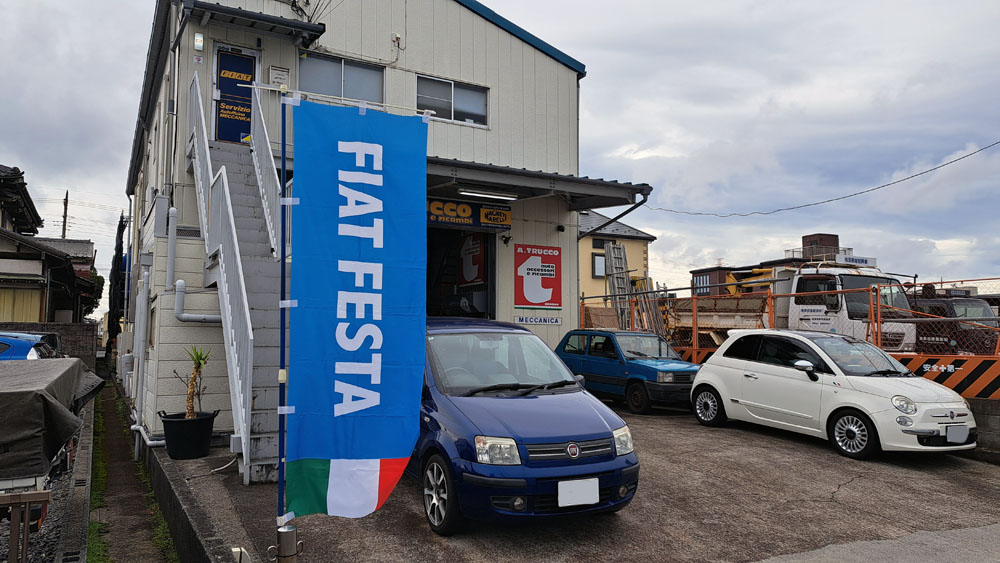 Event 雨の合間に fukushima 2026年4月10日 来月開催の主催イベント@FIAT FESTAに向け、 イベントモード発動で幟をチェンジしました。 FIAT FESTA2026 オフィシャルサイト