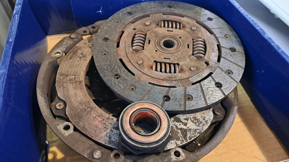 TRUCCO Today! FIAT500 fukushima 2026年4月15日 クラッチ交換の500はパーツ組換えが終わりミッション搭載に移っています。 カバー&ディスクは勿論ですがレリーズベアリングは摩耗して動きが悪い状態でした。 異音が大きくなる前に丁度よい交換のタイミングでした。