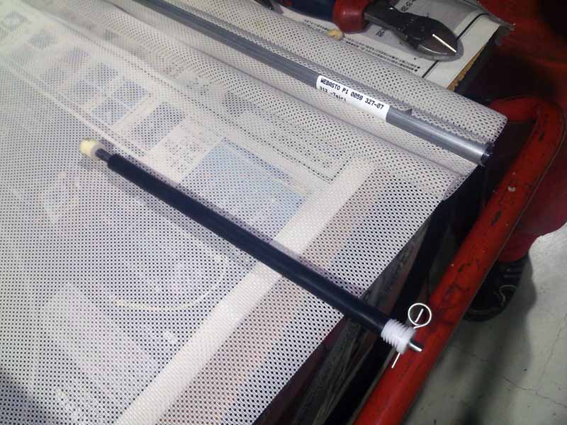 TRUCCO Today! FIAT500 fukushima 2014年11月28日 USED CARコーナー掲載のFIAT500@カダムーロエアロ号。 ルーフのスクリーン開閉が良くないので巻取りスプリングを交換です。 天張り外してスクリーン&ガイドレール他を外しスプリングを交換。 テンションも調整したので、適度なスピードでスムーズな開閉になりました。
