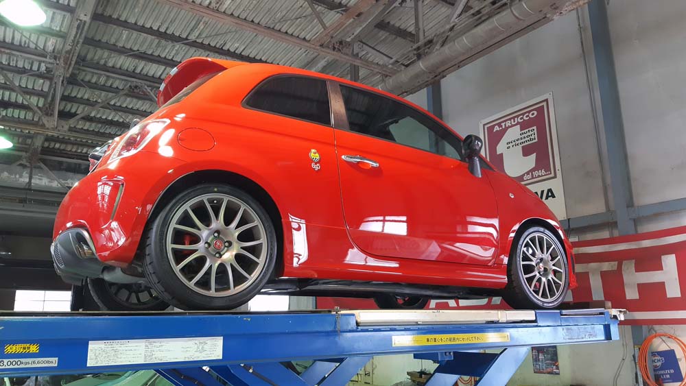 TRUCCO Today! ABARTH695 fukushima 2021年5月12日 695トリブートはCPM Lower Reinforcementと TRUCCOリアレンフォースメントバーを装着です。