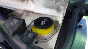 TRUCCO Today! ステアリングコラムエクステンダー fukushima 2021年10月5日 ABARTH500ステアリングコラムエクステンダー&トップマウントブッシュ装着作業。 レザーモデルのエクステンダーを取り付けです。