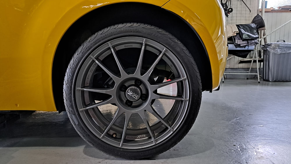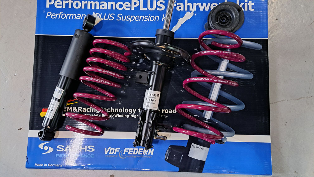 TRUCCO Today! SACHS performance PLUS fukushima 2024年9月24日 500ツインエアのサスペンション交換完了。 1Gでブッシュテンションも抜いた後の車高比較画像です。 下がり過ぎないダウン量が人気のVOGTLANDスプリングで良い感じの佇まいに! 作業はまだまだ続きます。
