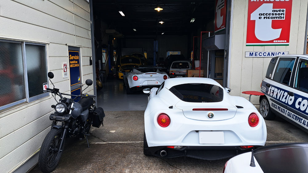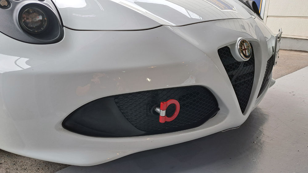 TRUCCO Today! 4C fukushima 2024年10月3日 4Cが2台並ぶ本日のTRUCCO。 Aragosta+レカロシート装着の4Cは仕上げに CLOS牽引フックを装着し今回の作業メニュー完成。 テスト走行を行って納車に備えます。