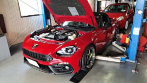 TRUCCO Today! ABARTH124spider fukushima 2024年10月13日 エンジンオイル&フィルター交換や ディバーターバルブアダプター装着でご来店のABARTH124。 OPEN/CLOSE切り替えタイプのアダプターを装着しました。