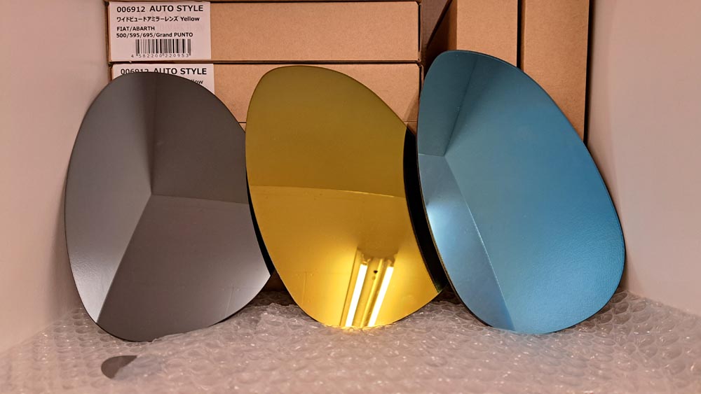 Topic! イエローミラー fukushima 2024年11月16日 ワイドビュードアミラーレンズの新色@イエローミラー入荷! 現在、3種類共に在庫アリマス。 フィアット・アバルトパーツのTRUCCO ONLINE SHOP