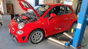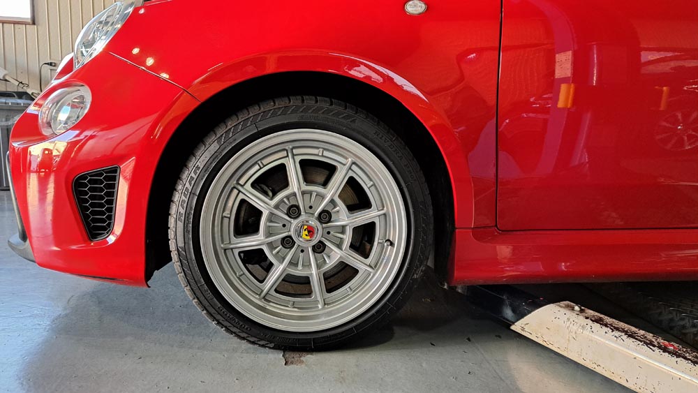 TRUCCO Today! RETROFIT16 fukushima 2024年12月15日 ABARTH595はエンジンオイル交換&ターボブランケット取付でご来店。 TRUCCOオリジナルホイール@レトロフィット16も装着頂いていまーす。