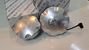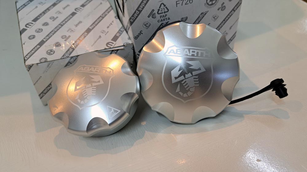 ABARTH純正のアルミオイルフィラーキャップやフューエルキャップ