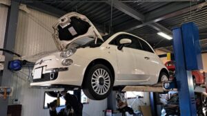 TRUCCO Today! FIAT500 fukushima 2025年2月20日 500はエンジンオイル定期交換でご来店です。 ツインエアにはMOTUL8100 X-cleangen2を使用します。