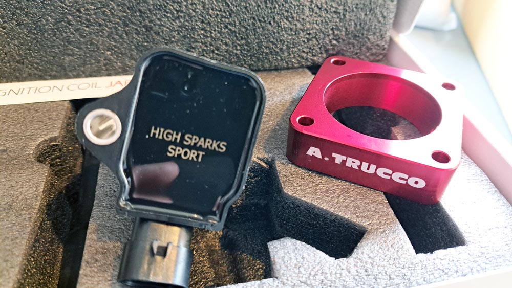 TRUCCO Today! ABARTH695 fukushima 2025年3月25日 695はHIGHSPARK SPORT IGNITION COILと TRUCCOスロットルスペーサー装着でご来店です。