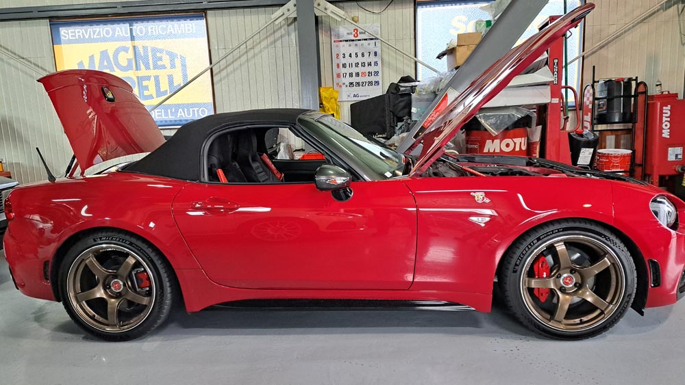 TRUCCO Today! 作業開始 fukushima 2025年3月29日 ABARTH124はターボブランケット装着他から作業を始めています。 耐熱ターボ・ブランケット for ABARTH124- TRUCCO ONLINE SHOP