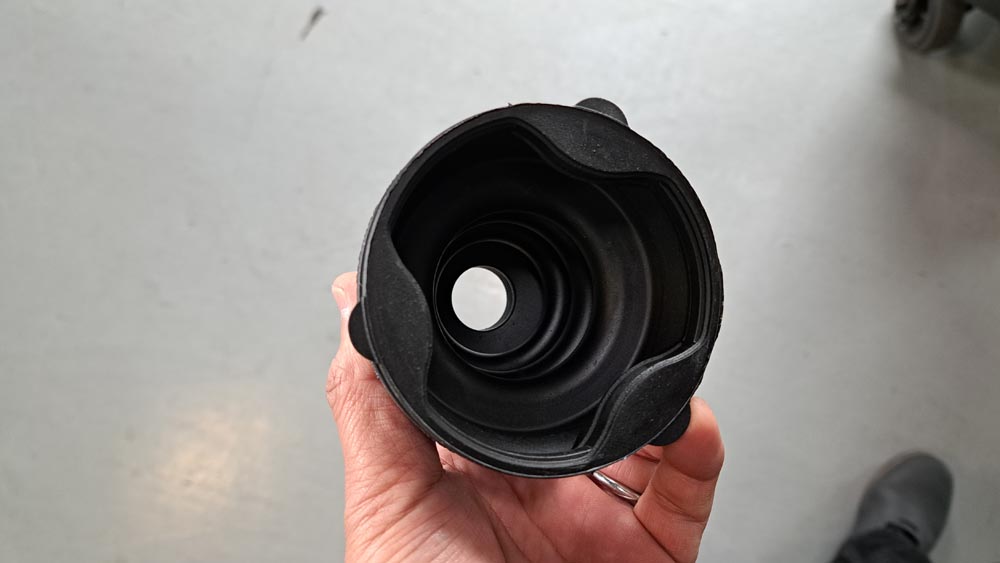 TRUCCO Today! 点検 fukushima 2025年4月2日 車検のカブリオイタリア点検整備作業。 亀裂でグリス漏れのドライブシャフトインナーブーツや 点灯不良ポジションランプバルブ交換を行いつつ、点検を進めます。
