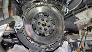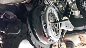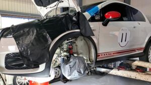 TRUCCO Today! ABARTH GRANDE PUNTO fukushima 2025年4月10日 ミッションの降りたABARTH GRANDE PUNTOは 各部の点検/清掃を行いつつ、レリーズシリンダーも交換し ライトウエイトフライホイールキットを装着です。