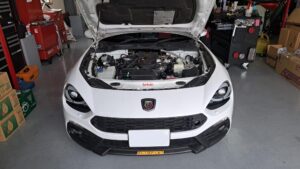 TRUCCO Today! ABARTH124 fukushima 2025年4月26日 124は純正タワーバーではアラゴスタ減衰調整が難しいので交換しました。 これでオーナー自身で好みのセッティングに変更が可能ですね。