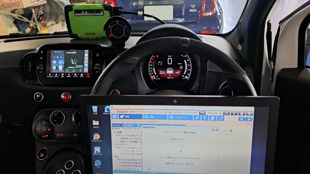TRUCCO Today! サービスインターバル fukushima 2025年5月4日 定期点検完了の695Cは診断機でエラーチェック/サービスインターバルリセットを行い テスト走行&週明けの納車に備えます。