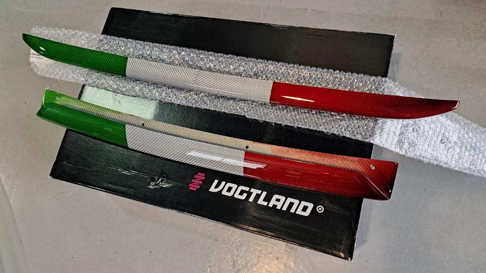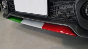 TRUCCO Today! KOSHI fukushima 2025年6月12日 サスペンション交換完了の595はKOSHIカーボンパーツも装着。 フロントトー&ステアリングセンター調整を行い、テストランに向かいます。