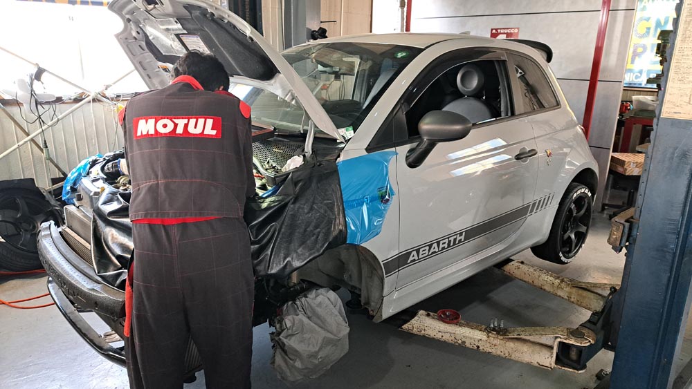 TRUCCO Today! ライトウエイトフライホイールキット fukushima 2025年6月20日 ABARTH595はライトウエイトフライホイールキット装着/ミッション搭載完了。 作業はまだまだ続きます。