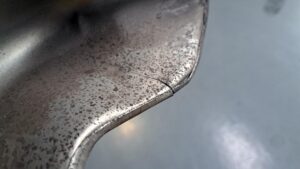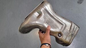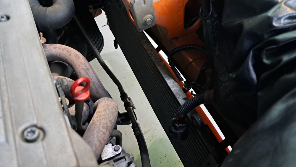 TRUCCO Today! 異音点検 fukushima 2025年6月26日 バルケッタは走行時の異音点検作業。 一定の条件で発生する激しい共振音はエキマニ遮熱板の割れが原因でした。 ラジエーターやクーリングファンを外してアクセスし遮熱板の状態を確認。 パーツは生産終了なので対策を施してテスト走行ですね。