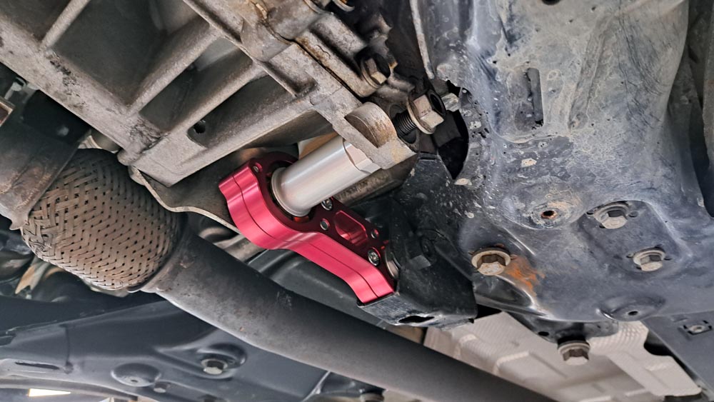 TRUCCO Today! 強化エンジンロワマウント fukushima 2025年7月9日 ライトウエイトフライホイールキット装着の595ミッション搭載完了。 ゴムブッシュの千切れたエンジンロワマウントは強化タイプへ交換し スロットルスペーサーも装着、作業はまだまだ続きます。