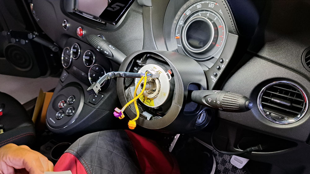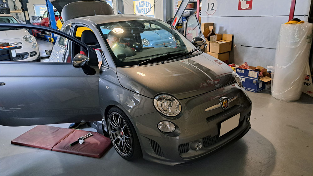 TRUCCO Today! ステアリングコラムエクステンダー fukushima 2025年7月26日 ABARTH595はステアリングコラムエクステンダー+バタフライエッジ装着でご来店。 ボディーカラーに合わせGrigio Recordをチョイスです。 仕上げにフロントトー&ステアリングセンター調整を行い納車となります。