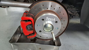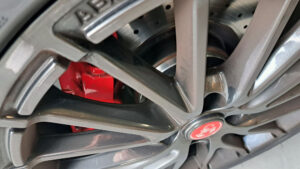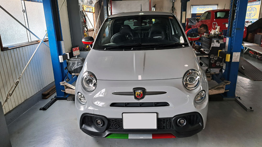 TRUCCO Today! ホイールスペーサー fukushima 2025年8月23日 ABARTH595はホイールスペーサー装着でご来店。 面一定番サイズのフロント11.5mm/リア16mmを装着しました。