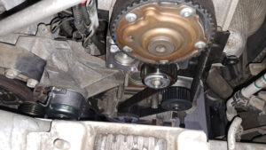 TRUCCO Today! タイミングベルト交換 fukushima 2025年8月28日 FIAT500 1.2のタイミングベルト交換作業進行中。 点検でフルード漏れを確認したリアホイールシリンダーも交換です。