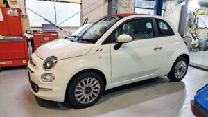 TRUCCO Today! MCBコンプリート fukushima 2025年9月5日 FIAT500Cモーションコントロールビーム前後&センター装着コンプリート。 作業はステアリングコラムエクステンダー装着に移ります。