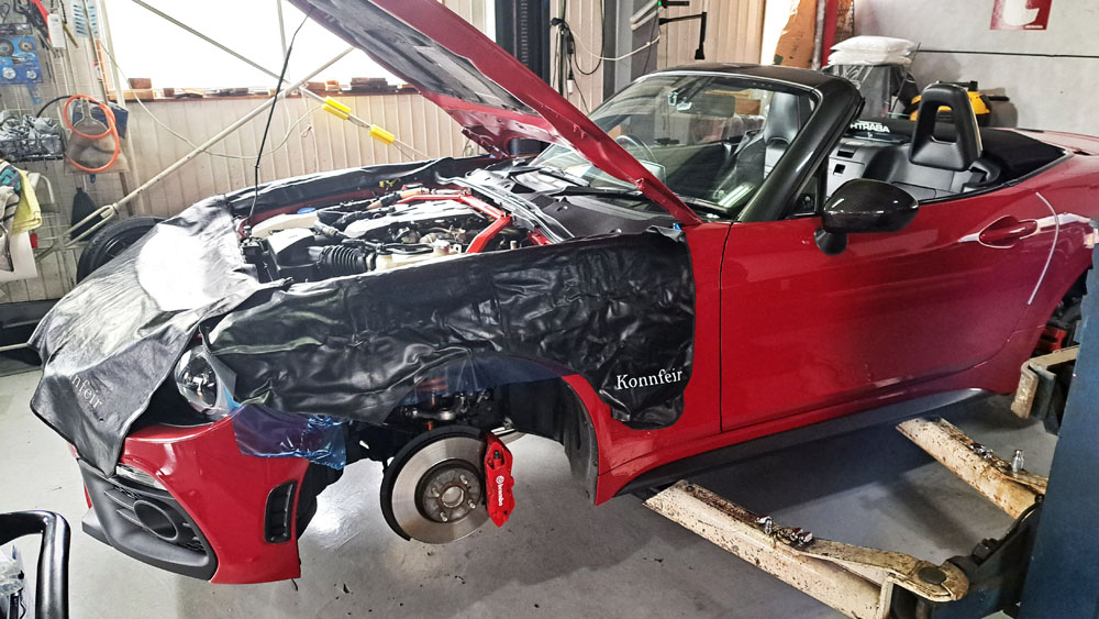 TRUCCO Today! 作業開始 fukushima 2025年10月1日 ABARTH124各部整備を開始します。 まずはアラゴスタサスペンションオーバーホールのため ノーマルサスへの交換から始めます。