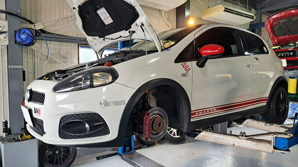 TRUCCO Today! DIXCEL+ENDLESS fukushima 2025年10月4日 ABARTH GRANDE PUNTOはフロントブレーキローター&パッド交換でご来店。 DIXCELスリットローターにパッドはENDLESS MX72の組み合わせです。 パッドは摩耗限界付近で丁度良い交換タイミングでしたね。