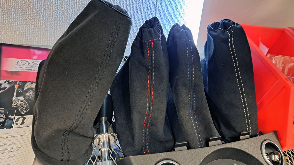 ブーストメーターカバーやシフトブーツ@アルカンターラ製品、各色在庫アリマス。