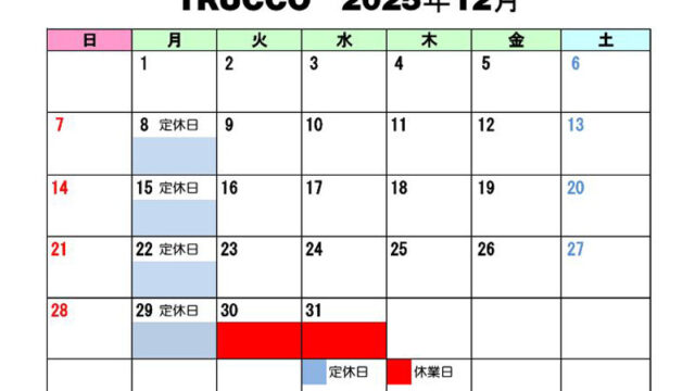TRUCCO Today! 年末年始休業のお知らせ 2025年12月25日 fukushima https://a-trucco.com/wordp/wp-content/uploads/2020/01/header_logo.gif フィアット・アバルトのことならTRUCCO(トゥルッコ) 何時もトゥルッコをご愛顧頂き有難うございます。 年末年始休業日のお知らせです。 誠に勝手ながらTRUCCO KAWAGUCHIは下記期間を休業とさせて頂きます。 12/3 …